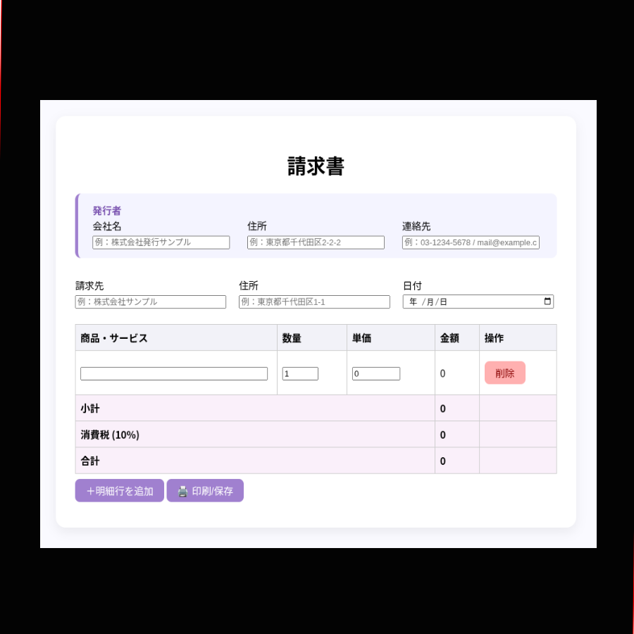 簡易 請求書ジェネレーター(ブラウザで即作成・印刷)
