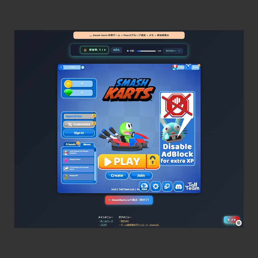 URLを共有するだけ。DiscordやZoomが苦手な方でも、ブラウザだけでグループ通話OK。 - ゲームと通話が“同じ画面”で完結